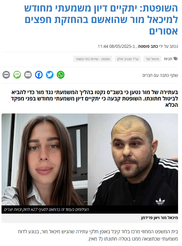 השופטת: יתקיים דיון משמעתי מחודש למיכאל מור שהואשם בהחזקת חפצים אסורים