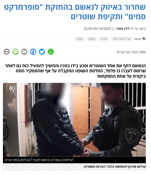 שחרור באיזוק לנאשם בהחזקת "סופרמרקט סמים" ותקיפת שוטרים